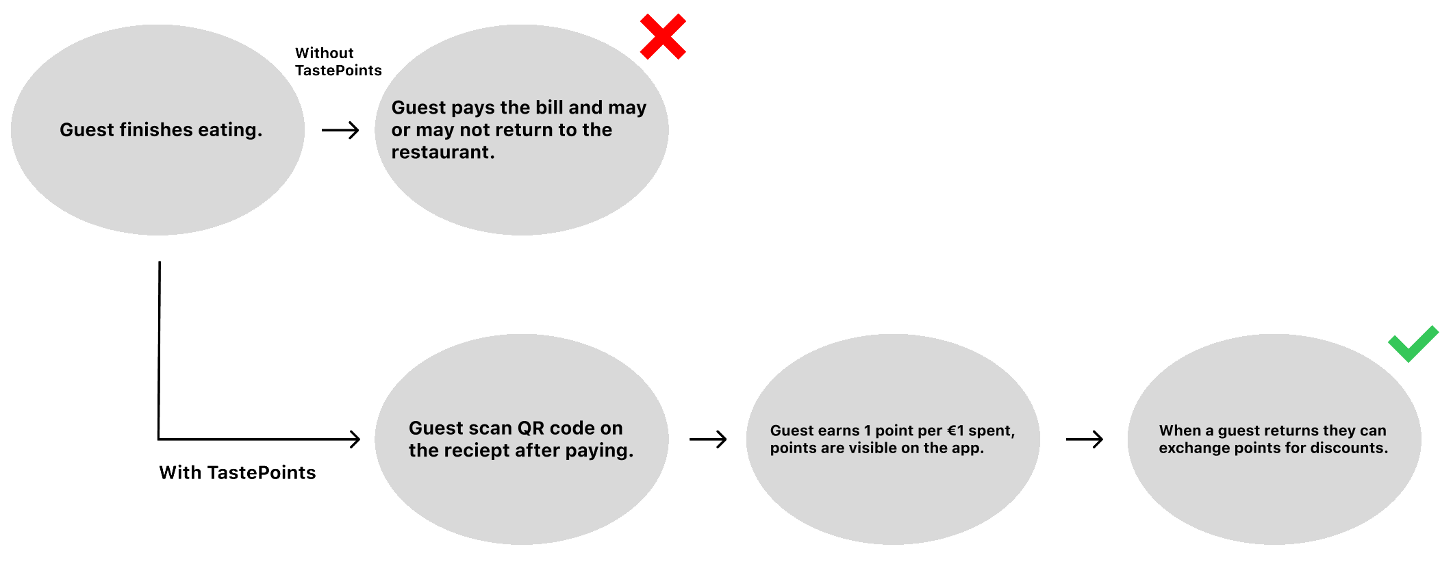 Many restaurants find it hard to keep customers coming back. Old loyalty methods like paper stamp cards are easy to lose and don’t give restaurants any useful information about their customers. Most digital loyalty systems that exist today are too complicated or expensive for small restaurants. Because of this, guests don’t have an easy way to collect rewards for what they spend, and restaurants miss the chance to build strong, lasting relationships with them. To solve this, I want to create a free app for the user and restaurant. The app will have a simple UI and main feature will be to collect and redeem points at a local restaurant.